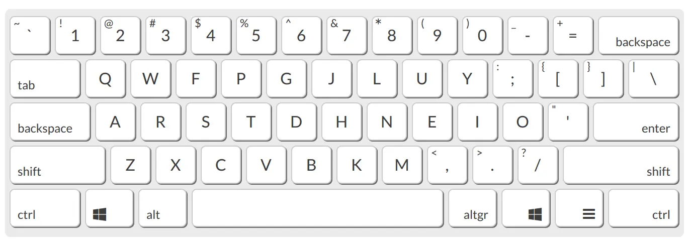 This is also called Base Layer as this is the one that is always active. To access any other layer I have to hold down the corresponding layer key. To explain the layout a bit, I started with Colemak, which looks like this: